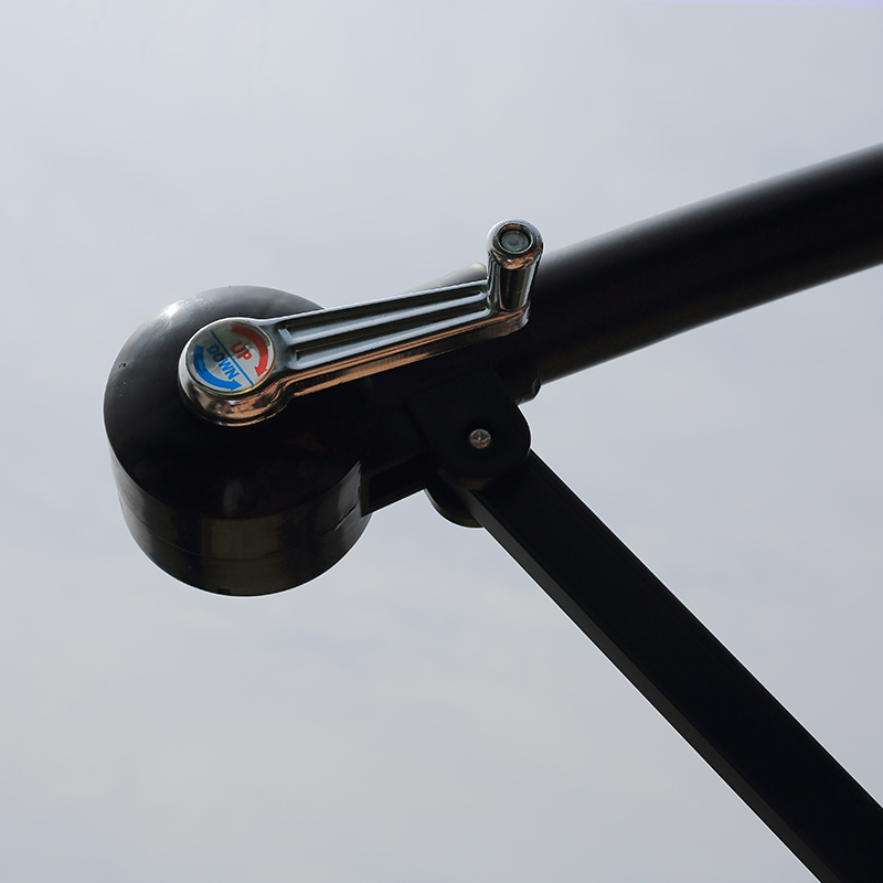 3米/6骨香蕉傘,全鐵,48毫米鋁立桿,42毫米鐵吊桿,12X18毫米鐵骨,180克布,無(wú)邊。